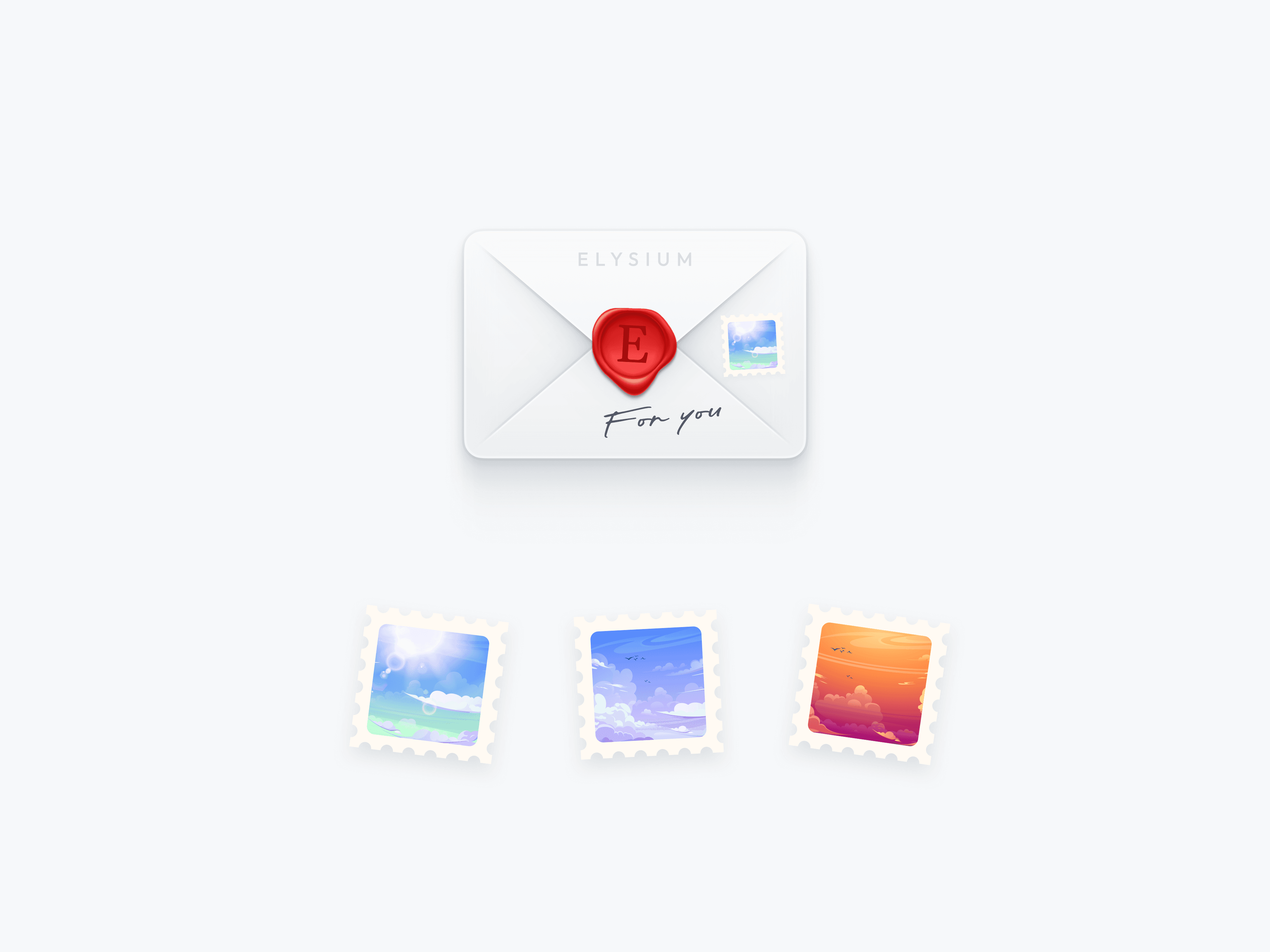 The “E” on the letter goes beyond being the initial of Elysium. It acts as a signature, emphasizing that each insight is personal. Its typographic presence reflects the app’s calm yet distinctive tone.